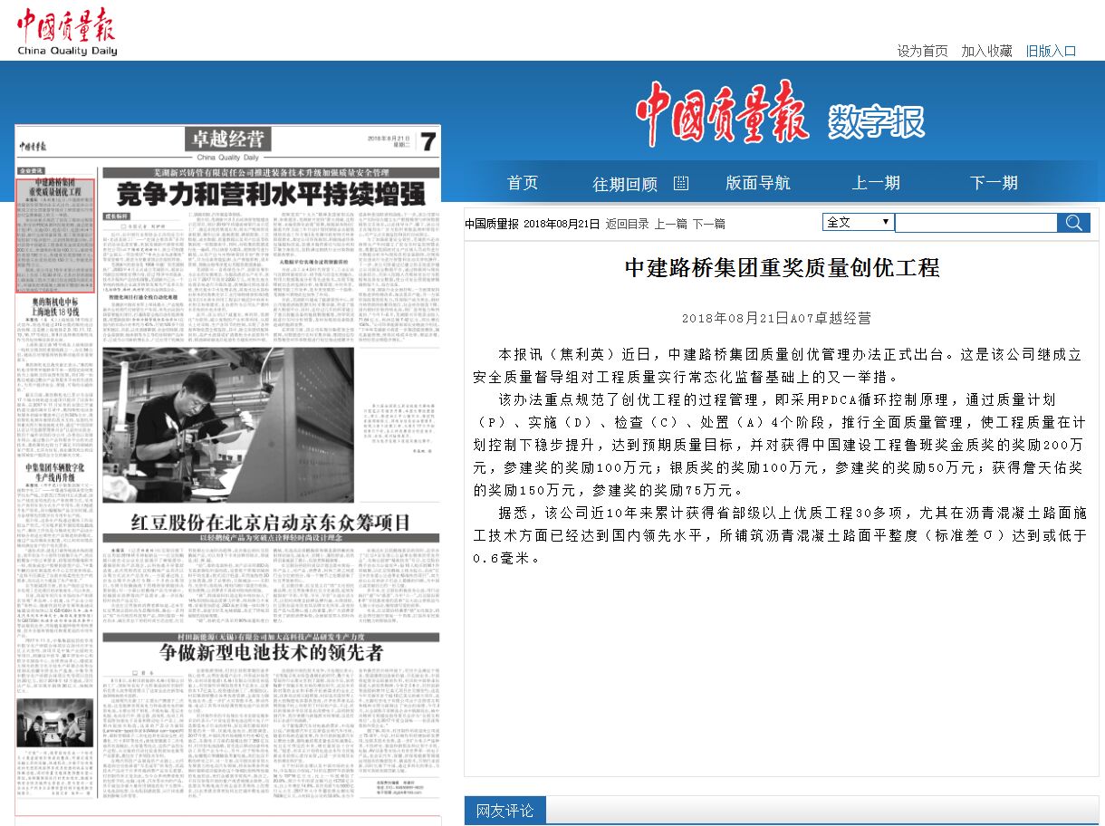 中建路橋集團重獎質量創優工程